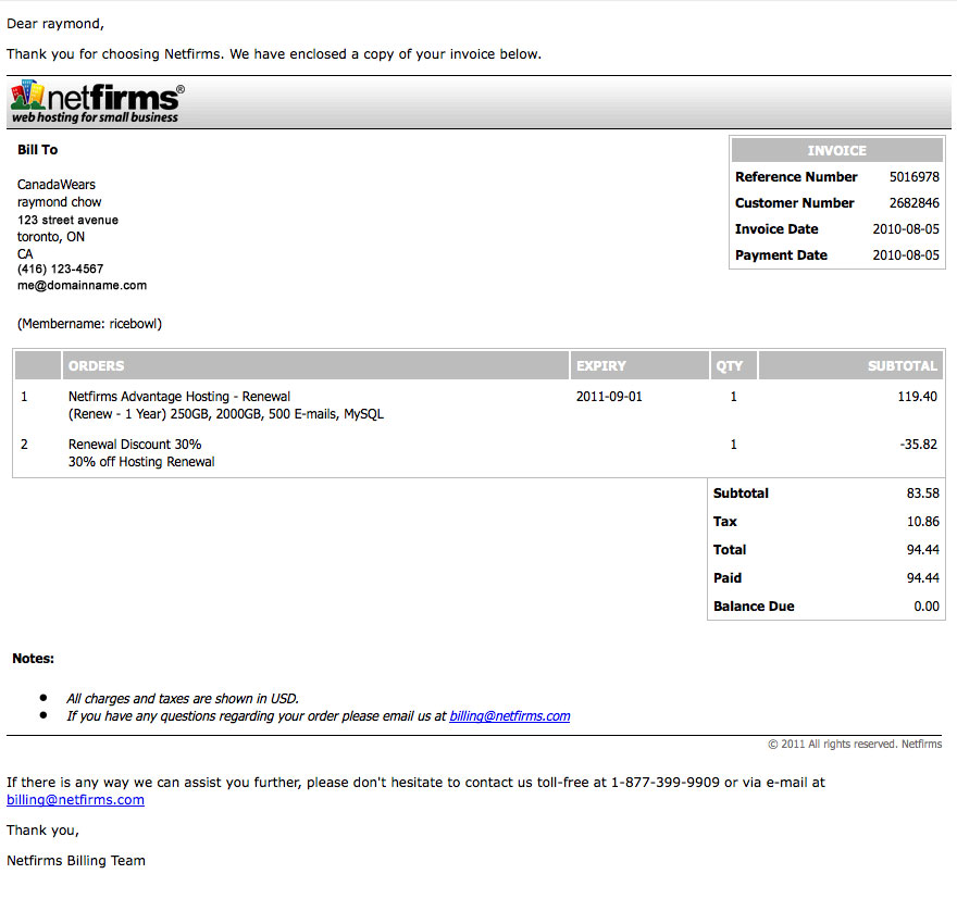 Automated E-Mails are sent out to customers for various reasons, which include product renewal reminders, order confirmations, invoices, and resource abuse warnings