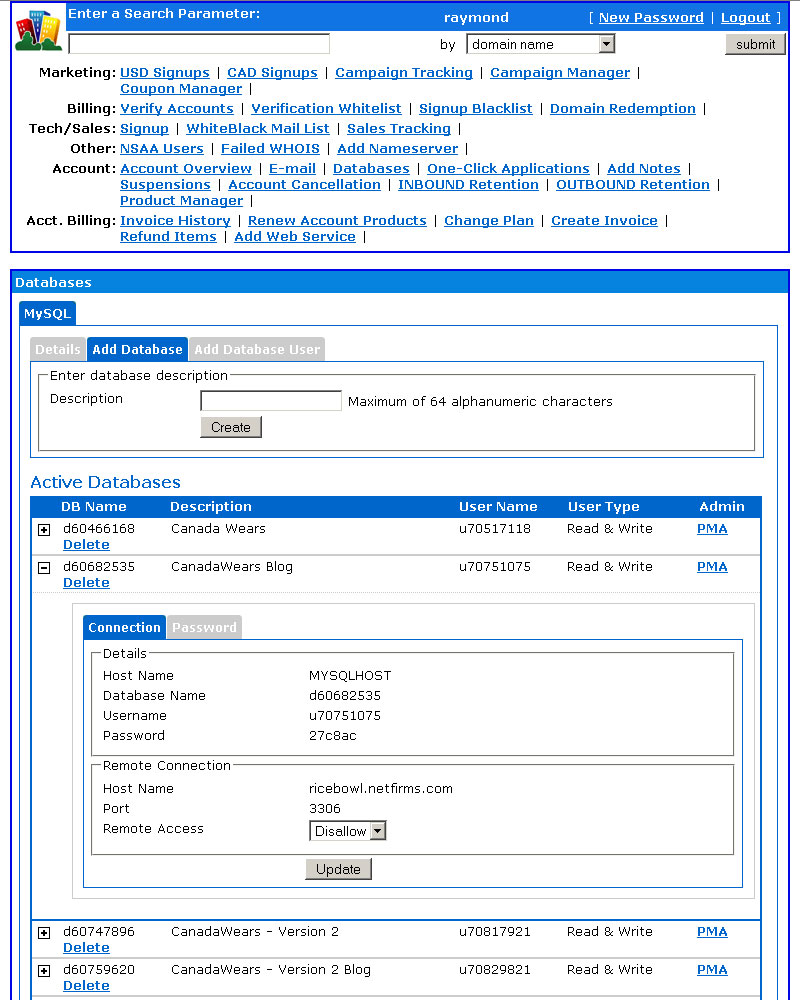 - Coded various interfaces to manage customer E-Mail accounts, MySQL databases, and product renewals